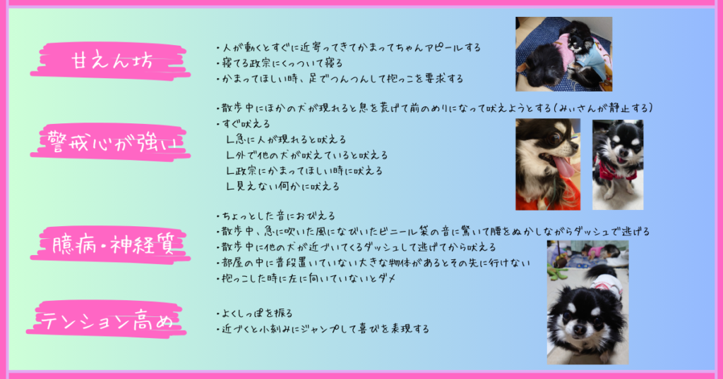 ネット上で紹介されているチワワの性格とウチのチワワ部の性格を比較してみたところ、