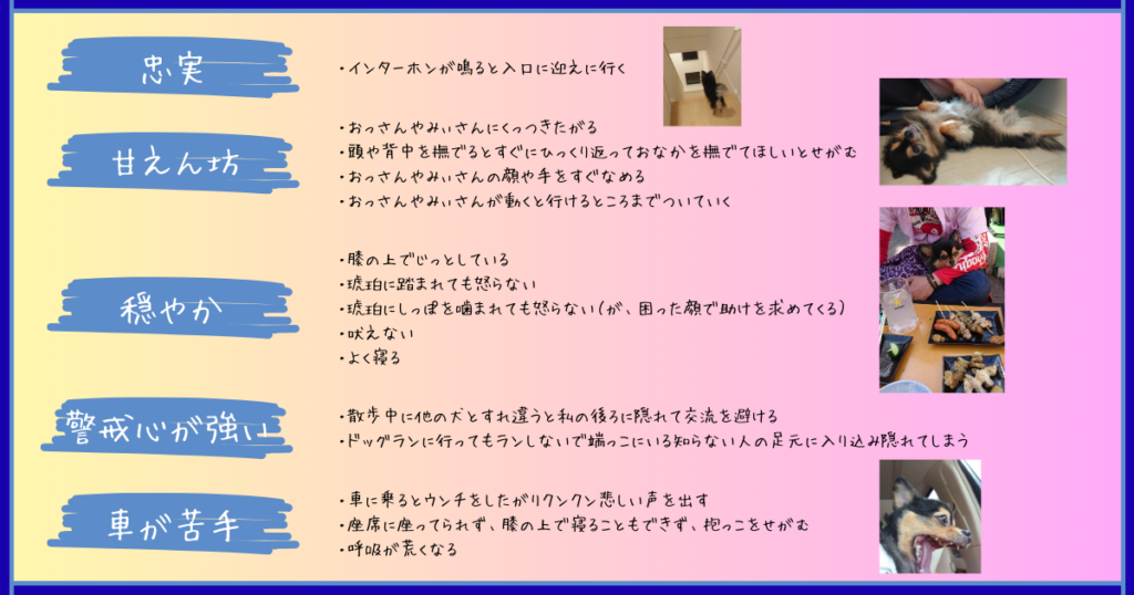 「よく吠える」「穏やか」「人懐っこい」など個性も幅広いとも言っています。